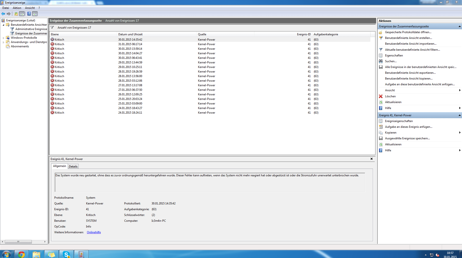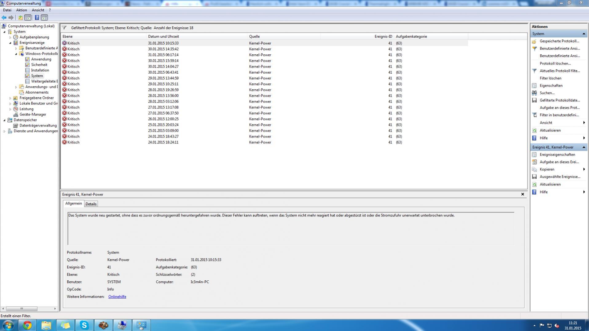 1 Problem: Rechner startet sich sporadisch neu, der Fehler tritt aber nur auf wenn man nicht am PC "arbeitet" soll heißen beim zocken oder surfen passiert das NIE. Kommt nur vor wenn man nichts macht.