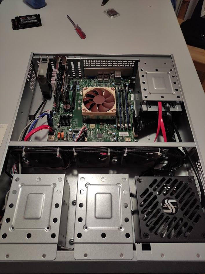 Bis dahin erstmal ein neues System, welches ich als Gameserver teilweise aus alten, teilweise aus neuen Komponenten zusammengebastelt habe (auf dem letzten Bild ist hinten noch der falsche Lüfter).
