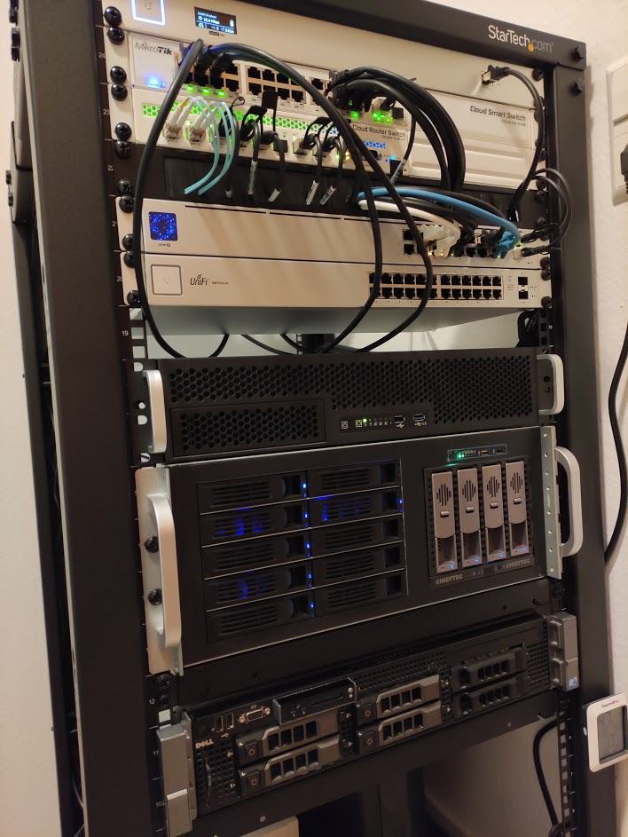Im Haus hab ich natürlich einen eigenen Raum für das Rack eingeplant gehabt, aber davor standen die Server auch schon am Dachboden, bzw. in der Wohnung dann WAF-gerecht in einem Schrank.
