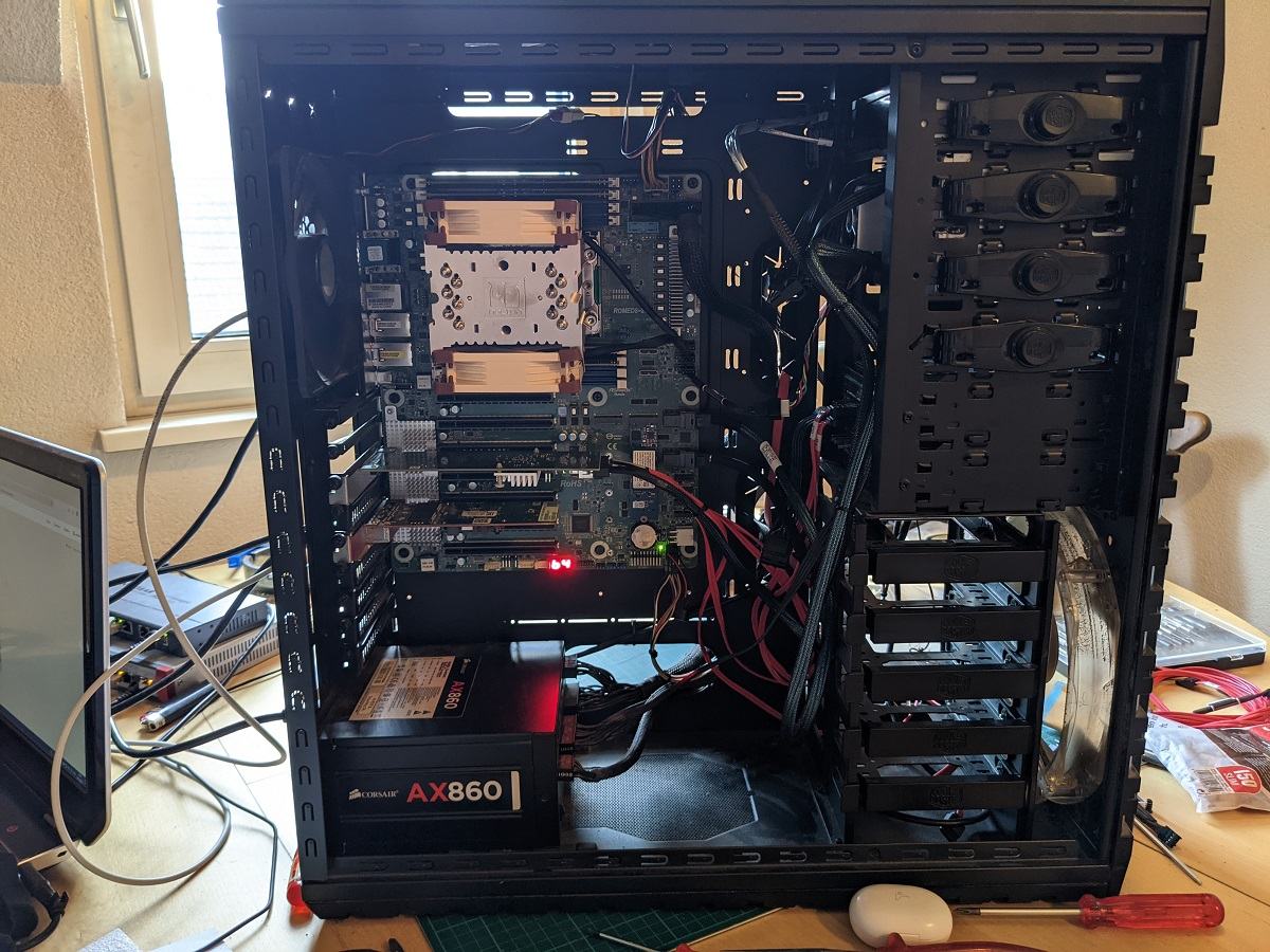 - in den Rear NVMe 4*4x slot kommt noch ein Riser Cable für ne 10GBe Karte irgendwann