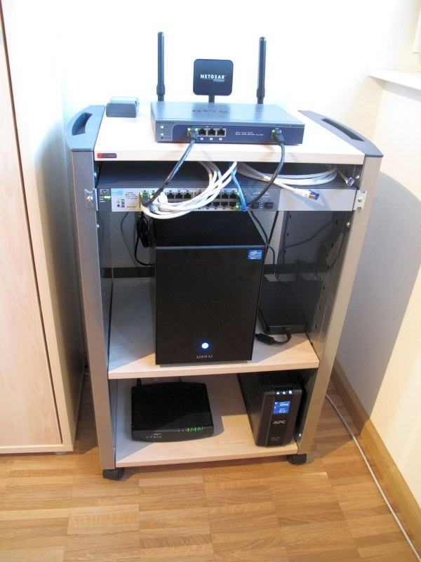 Hinten ist das Regal ja immer noch offen, dh über einen 1cm breiten Spalt kann die Warme Luft entweichen - die Lüfter pusten auch in diese Richtung (CPU und Netzteil). Temperaturen unter Volllast, wie sie beispielsweise durch das Streamen über Air Video entstehen liegen bei CPU = 65°C und HDD = 42°C. Im Idle hat die CPU etwa 48°C. Also alles im Grünen Bereich