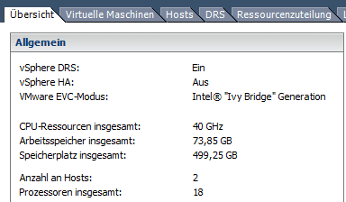 Somit habe ich nun folgende Ressourcen in meinem Intel Cluster zur Verfügung: (Speicherplatz wird dauernd neu zugewiesen)