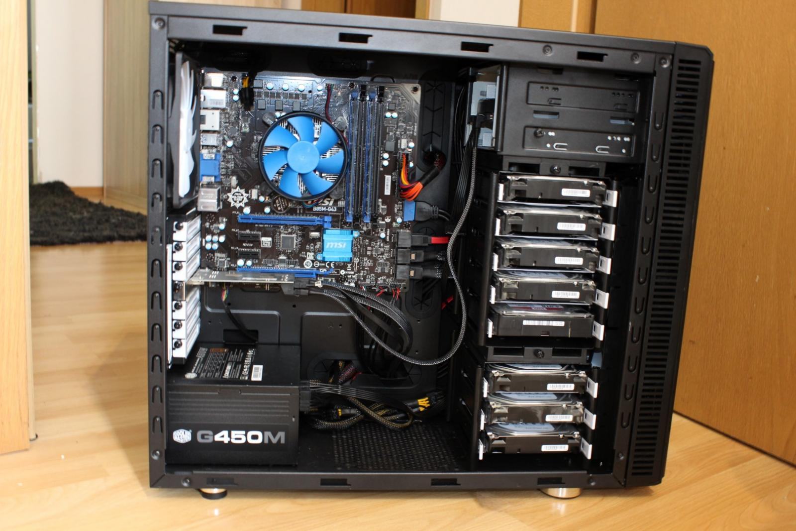Nach langem stillen Mitlesen hier mal mein System, das ich angesichts der Konkurrenz im Thread höchstens als "Homeserverchen" bezeichnen kann. Es ist mein erster Homeserver (abgesehen von einer QNAP, die mir aber schnell zu klein wurde), hat allerdings schon diverse Aufrüstungen erlebt (zu Anfang war ein i3-530 und eine PicoPSU verbaut). Stromverbrauch ist 27W im Idle, wenn alle Platten schlafen.