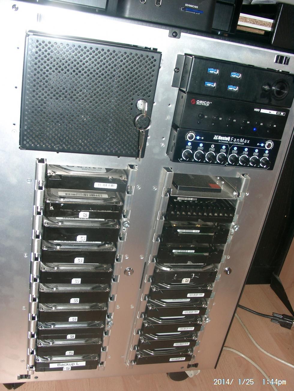 Und ansonsten noch diverse SSD (3) und HDDs (9) und 7 Lüfter (Noiseblocker/Bequiet), alles im guten alten