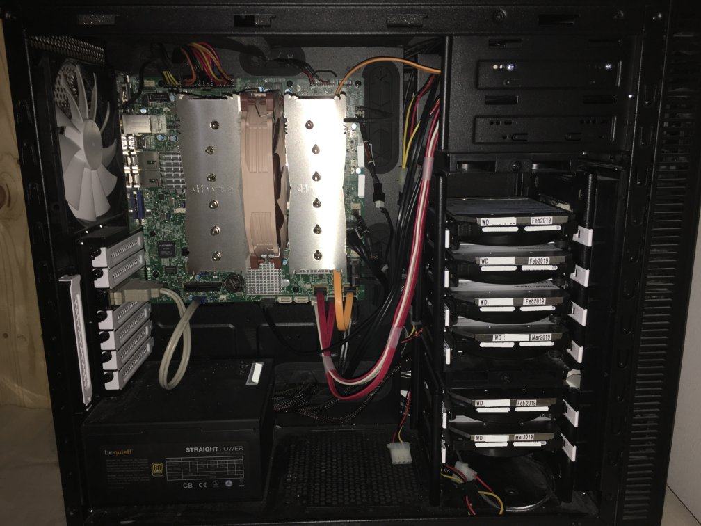 X11SSH-CTF, E3-1240v5 mit Noctua D15S, 64GB Ram ECC, 6*WD HC530 14TB (im Raidz2) , Samsung 960 Evo 1TB, In der SSD-Backplane sechs SM863 960GB (Stripepool über 3 Mirror-Paare). NT 400W BQ Straight Power.