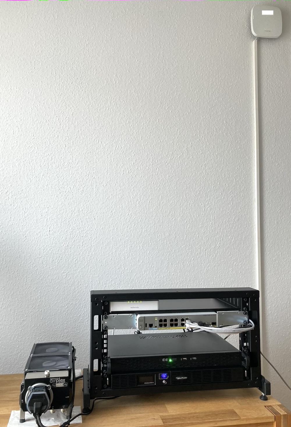 Das Rack steht 5cm von der Wand entfernt, außerdem ist das Fach oben ja zur Hälfte frei, dachte eigentlich, dass die Wärme sich nicht so stauen würde.