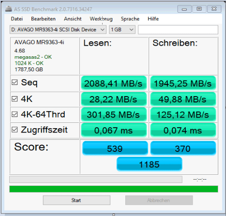 Ein bisschen schade ist jetzt, dass ich keinen Slot mehr habe, um irgendwann mal 2,5G nachzurüsten, denn die Storage Performance ist jetzt durchgehend so gut, dass ich das 1G auslasten kann, während ich vorher mit ~35 MB/s vom Parity Volumen der Storage Spaces kopiert habe.