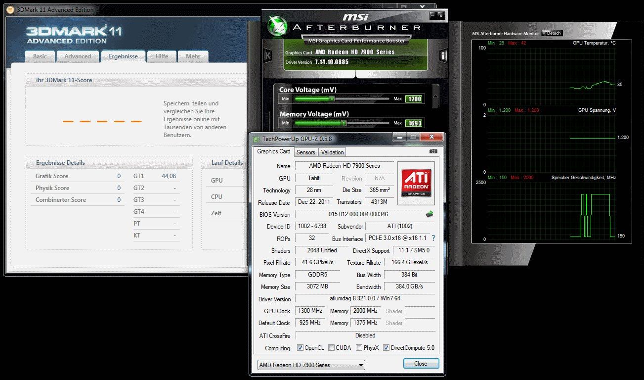 Also es gibt zwar nicht massig XP Scores aber bei dem von AY hättest du gesehen das 1. GPUz nicht funzt und das du 2. CCC oder was anderes nehmen kannst zum Taktraten anzeigen ;)