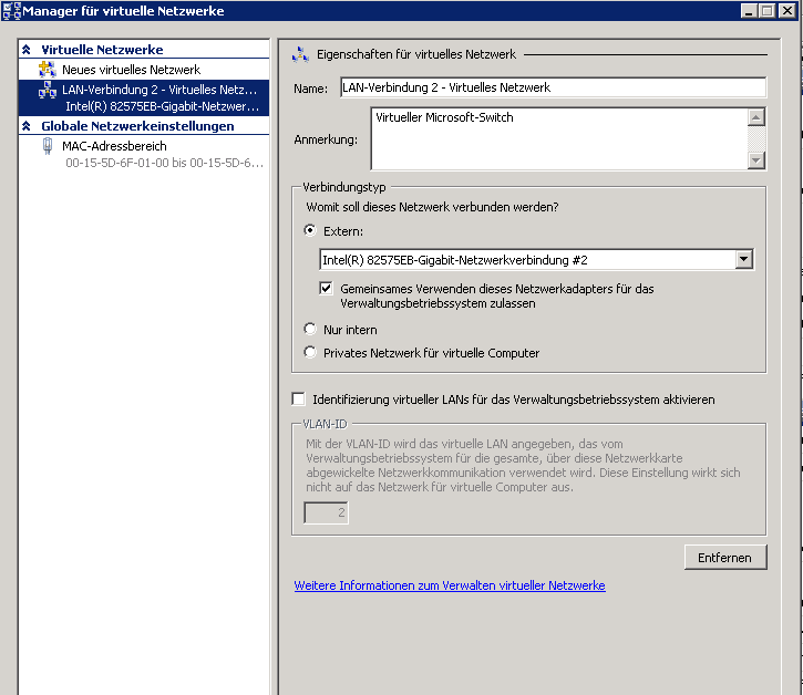 Das gleiche kommt auch bei den virtuellen Maschinen die drauf laufen. Ich kann nicht mehr genau sagen, wann und wie es dazu gekommen ist. Habe jetzt schon etwas im Internet recherchiert und hab fast überall gelesen, dass Einstellungen an der Netzwerkkarte vorgenommen werden sollen.