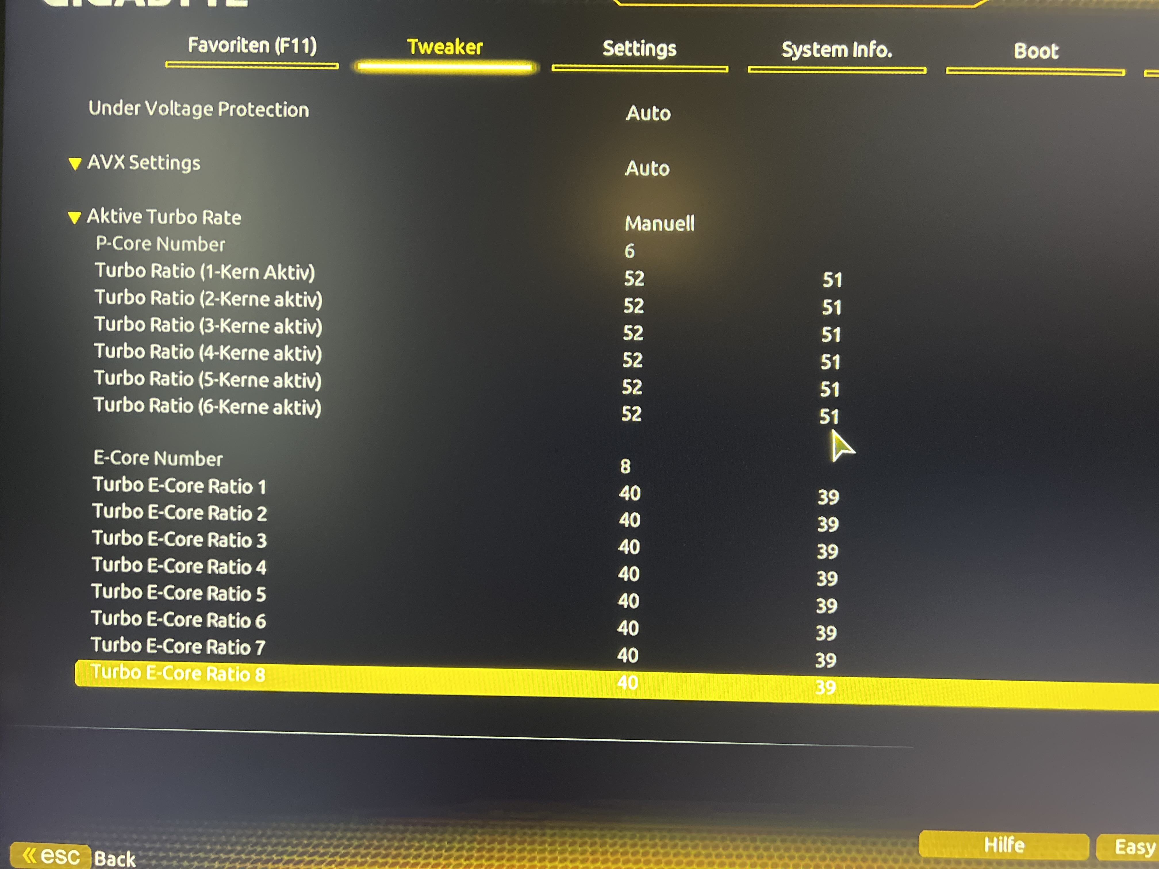 Guten Abend, ich hab mal eine Frage, hat jemand von euch ein i5 13600K und kann mir sagen was ich einstellen soll im BIOS, damit ich die P Core auf 5,4 GHz und die E Core auf 4,2 GHz übertakten kann.