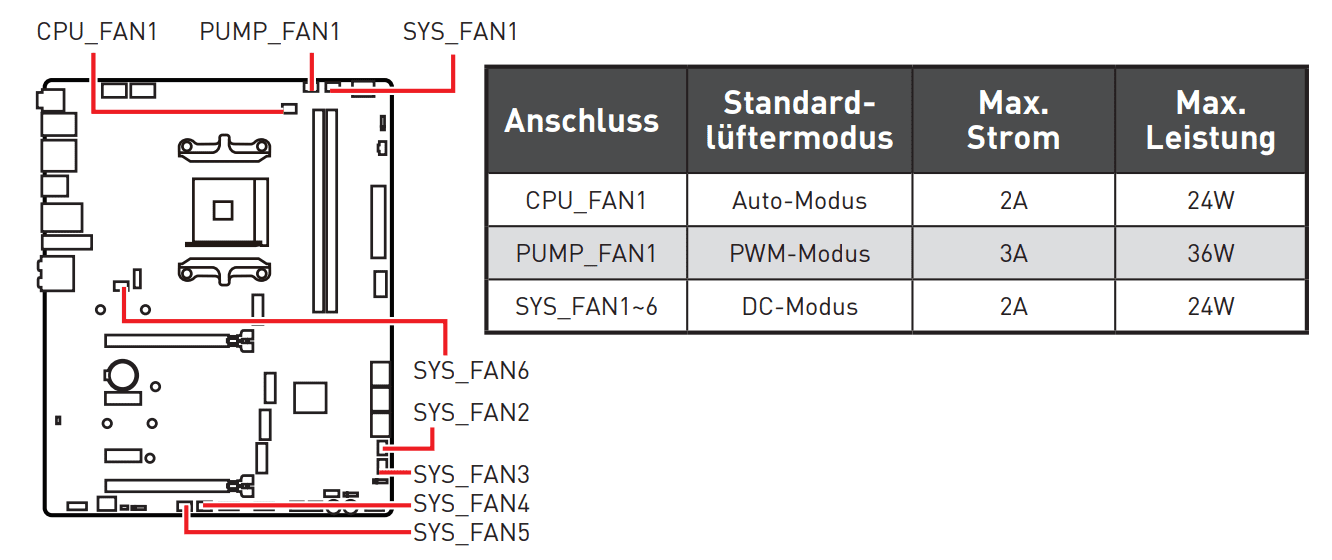 Im Handbuch deines unbekannten MB sollte auch so ein Diagramm dabei sein, wenn bei CPU 1 keine Drehzahl erscheint dann ist entweder kein Lüfter angeschlossen oder er ist blockiert.