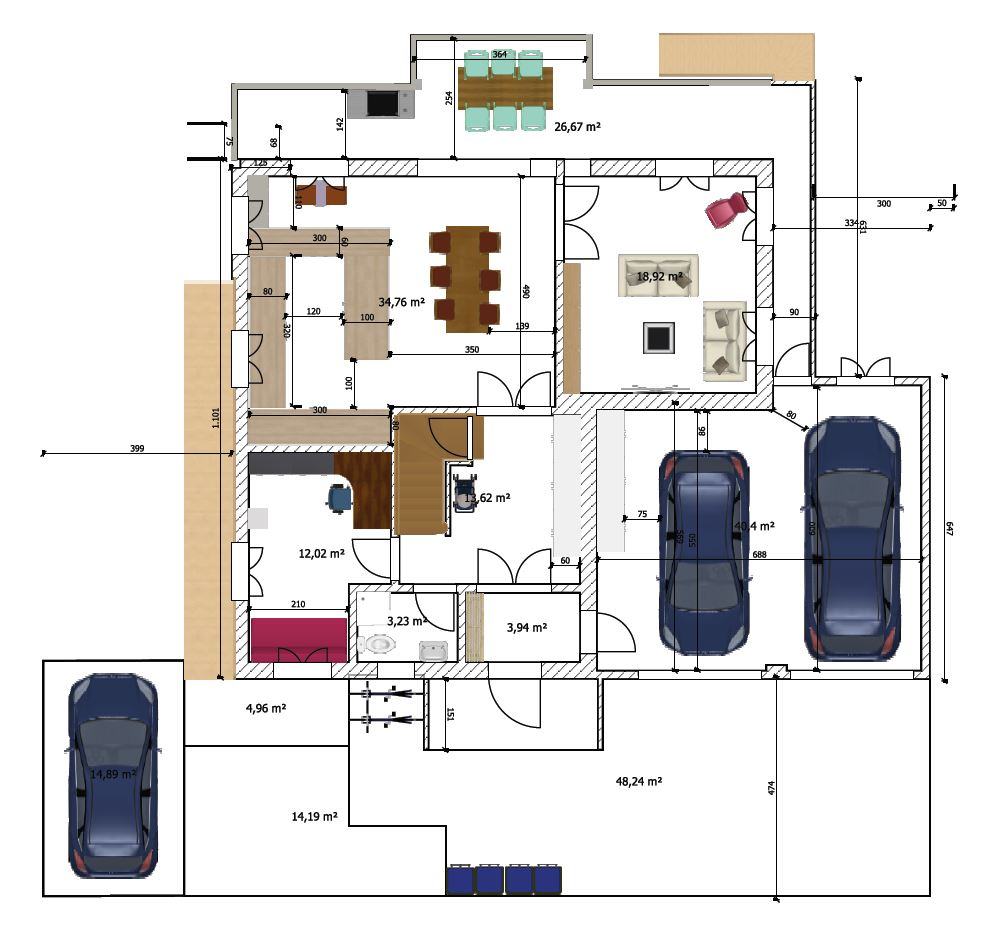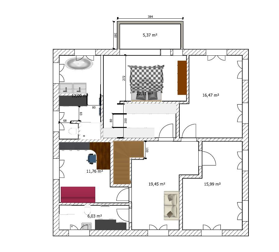 Der Fachmann darf daraus gerne noch eine "geradlinigere" Version bauen, aber wo da Platz verschenkt sein sollte, würde ich doch gerne mal genauer wissen. Das ganze mit einem Musterhaus, das auf der platten Wiese geplant wurde, zu vergleichen ist auch ein bisschen einseitig. Sinnvolle Vorschläge nehme ich gerne an, aber viele Dinge die hier bemäkelt werden, sind eben unseren Ansprüchen und dem Grundstück geschuldet. Sieht dann vielleicht nicht so "clean" aus, wie in den Werbekatalogen, geht aber auch nicht anders.