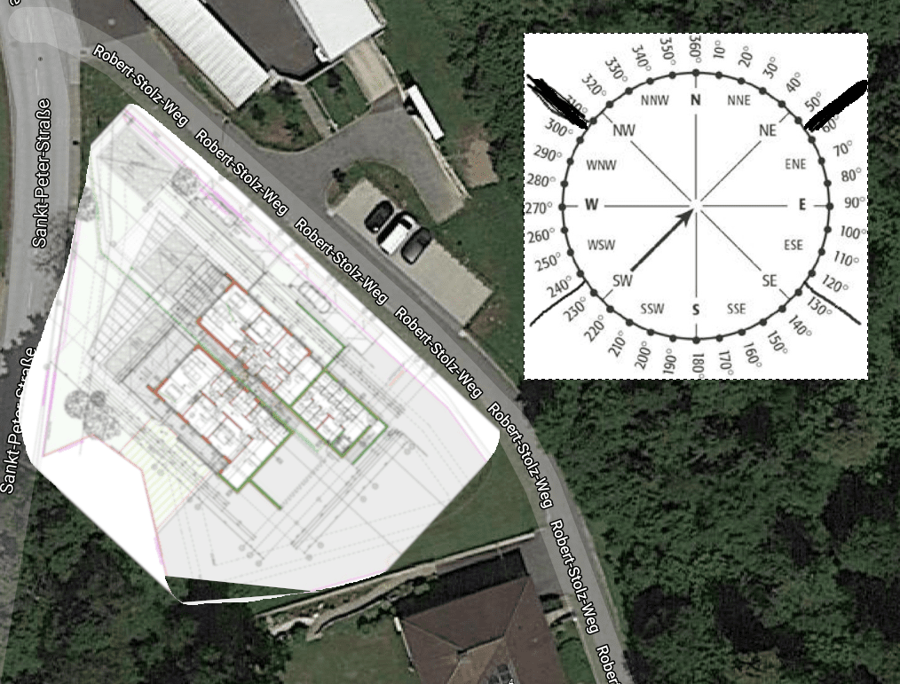 im Anhang das Bild... man beachte mein Gimp Künste ;) in der Kompassrose hab ich die Sonnen Auf- bzw Untergänge für den längsten (dicke Linien) un den kürzesten (dünne Linien) Tag eingezeichnet.