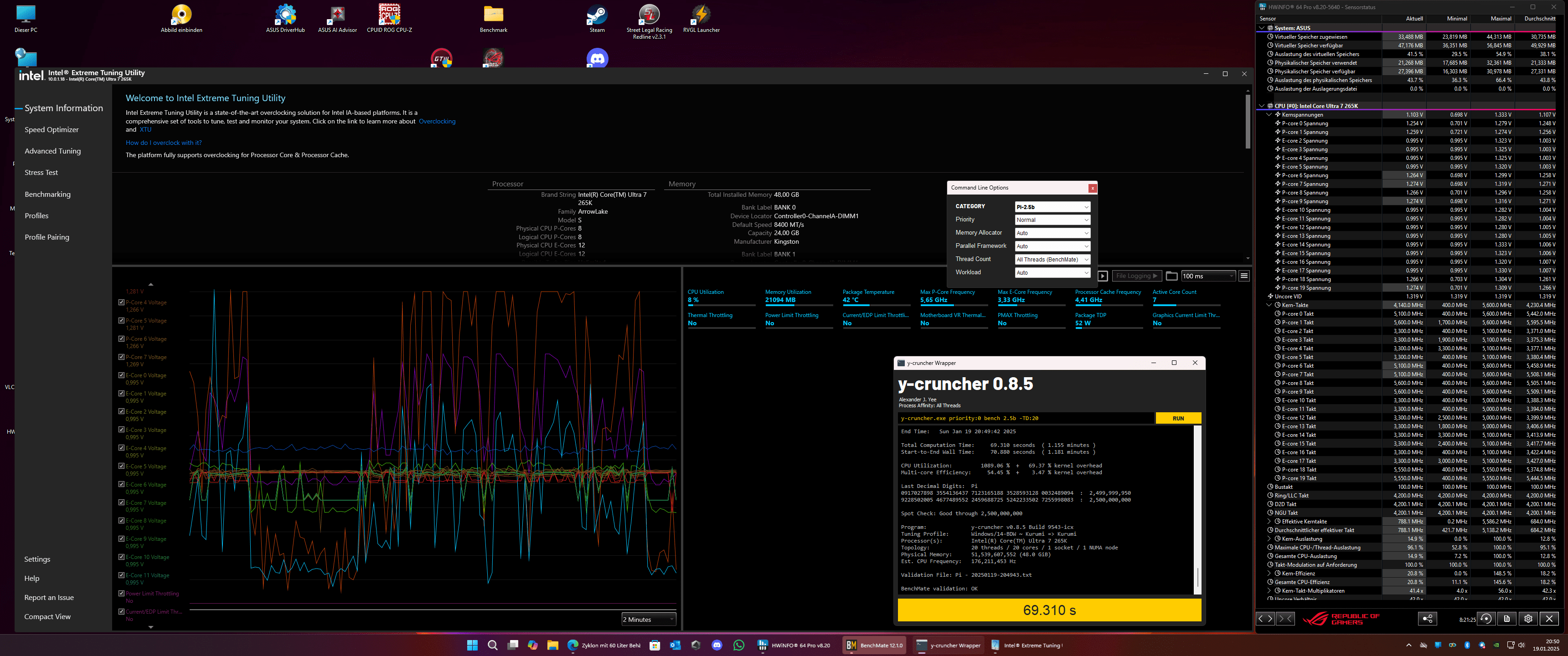 Tatsächlich liegt mein 265k mit dem aktuellen Setup schon fast bei einem 14900k, was ich in Ermangelung von HT und weniger Threads damit echt beachtlich finde.