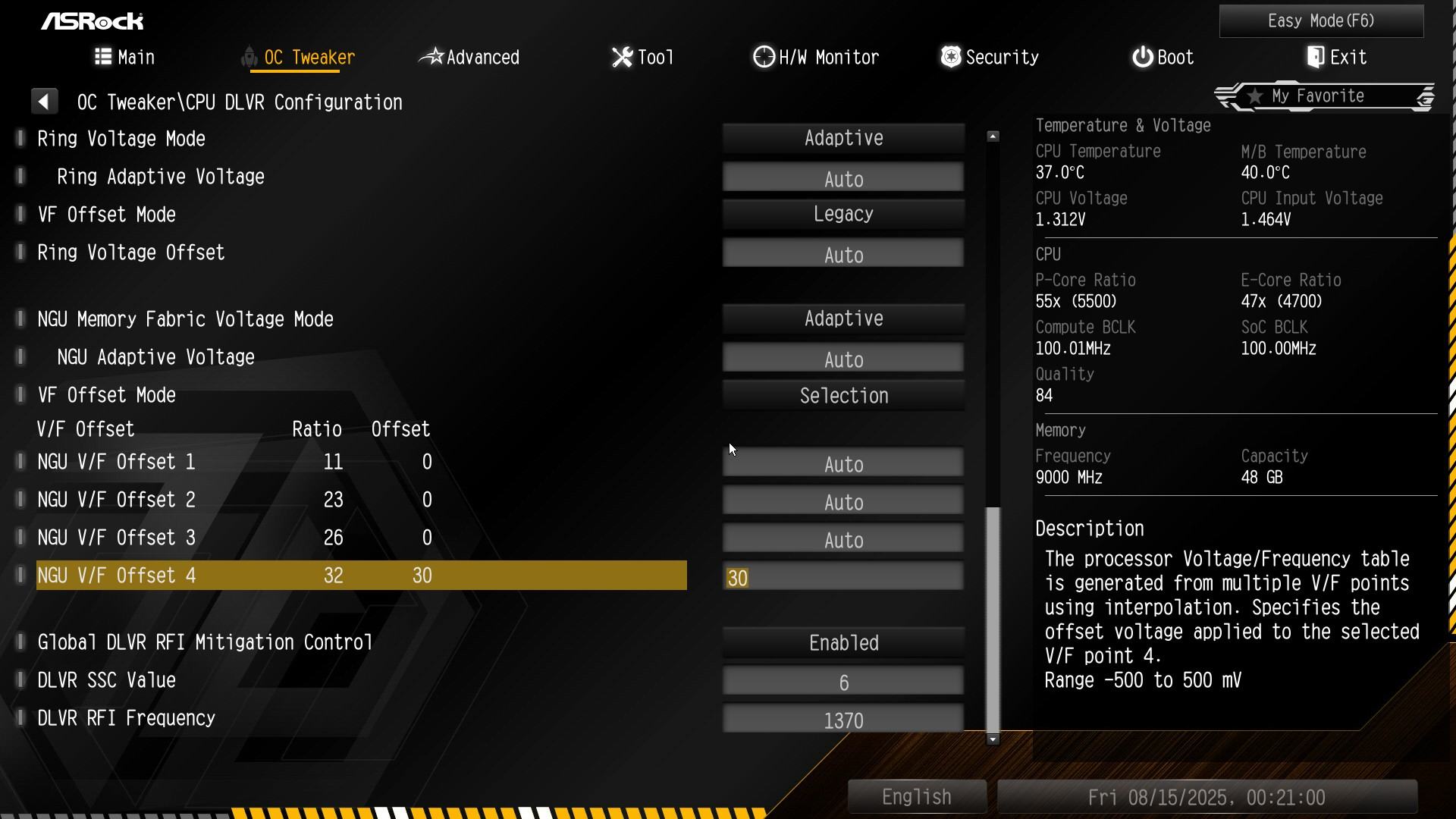 Ich setze also für Jeden P-Core einzeln das offset und bei den E-cores per cluster.