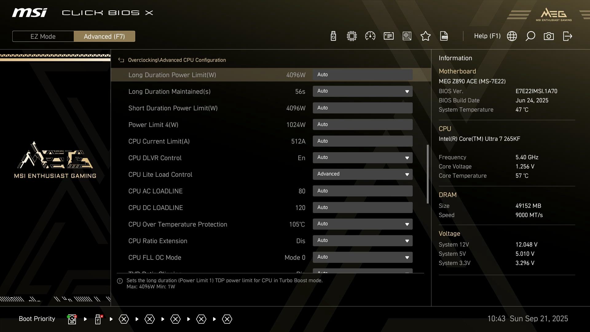 P.S. Ich hatte bei mir beim 13700K 100 Grad gewählt; da ich beim 265K den Intel 200S Boost verwende, kann ich nichts wählen = 105 Grad.