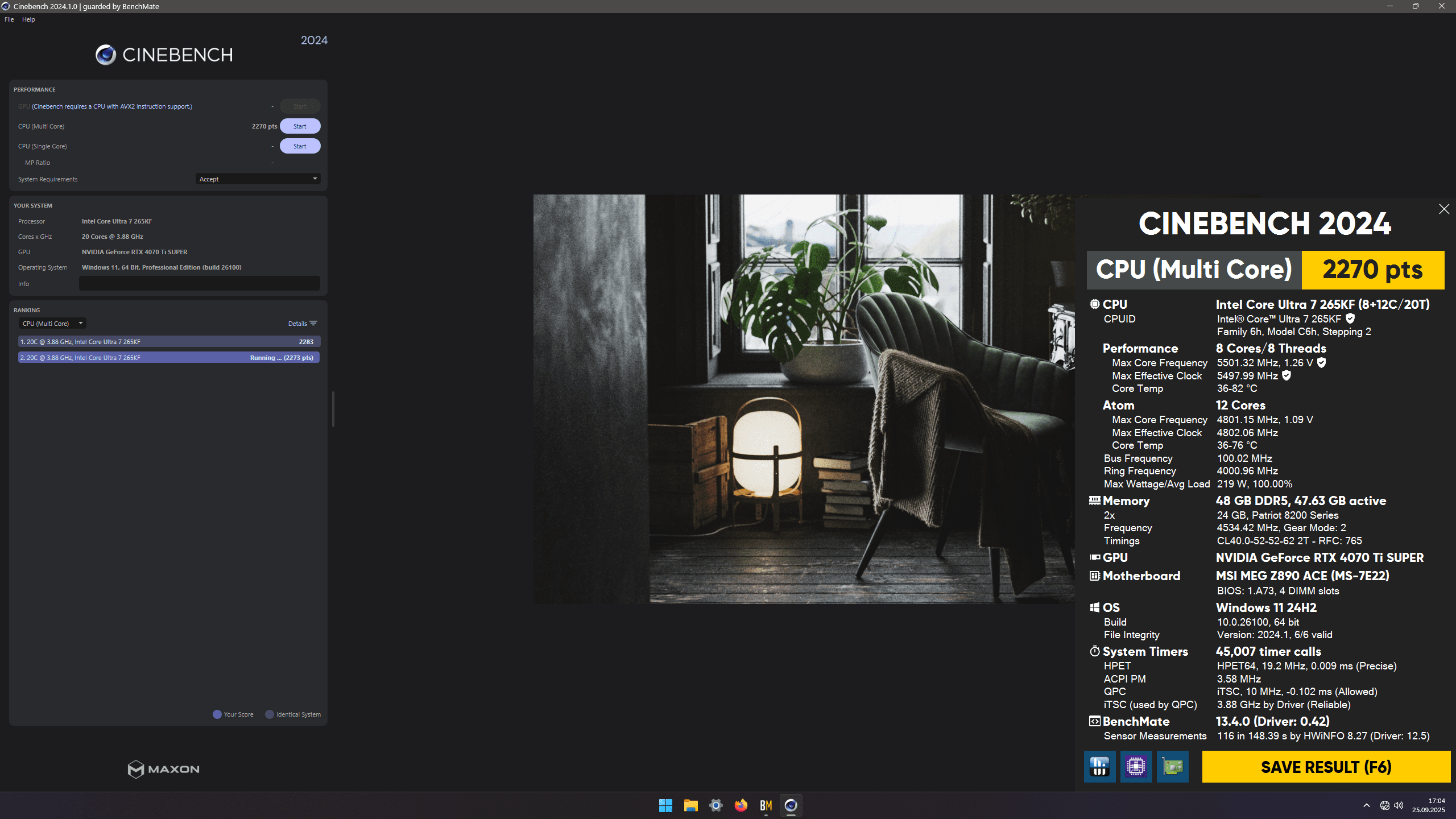 Die Werte eines Core Ultra 265K/KF sprechen für sich. Im Energieaufwand hat sich richtig was getan.Schlägt so ja eine 14900k oder sehe ich das falsch?