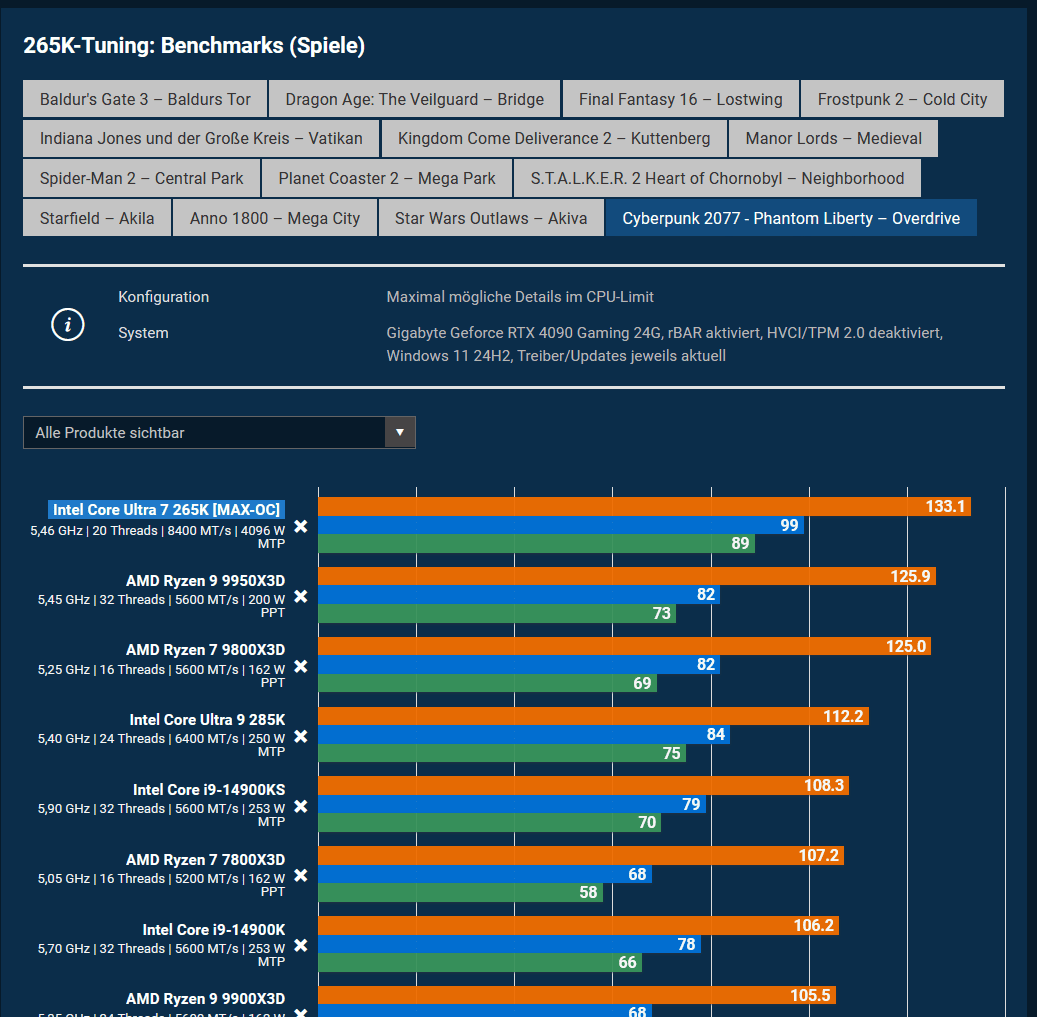 Ich glaube nicht, dass die getakteten Arrow Lake mit Ring/RAM Oc viel schlechter gehen als die X3D.