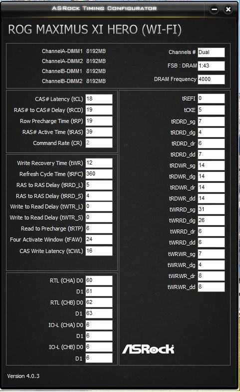 Ich habe mein Setup mal von 17-17-17-37 auf 16-16-16-36 umgestellt, aber leider bekomme ich Probleme, wenn ich tRDWR_sg und tRDWR_dg auf die üblichen "12" einstelle. Mit "16" (was er selbst vorschlägt) macht er keine Probleme.
