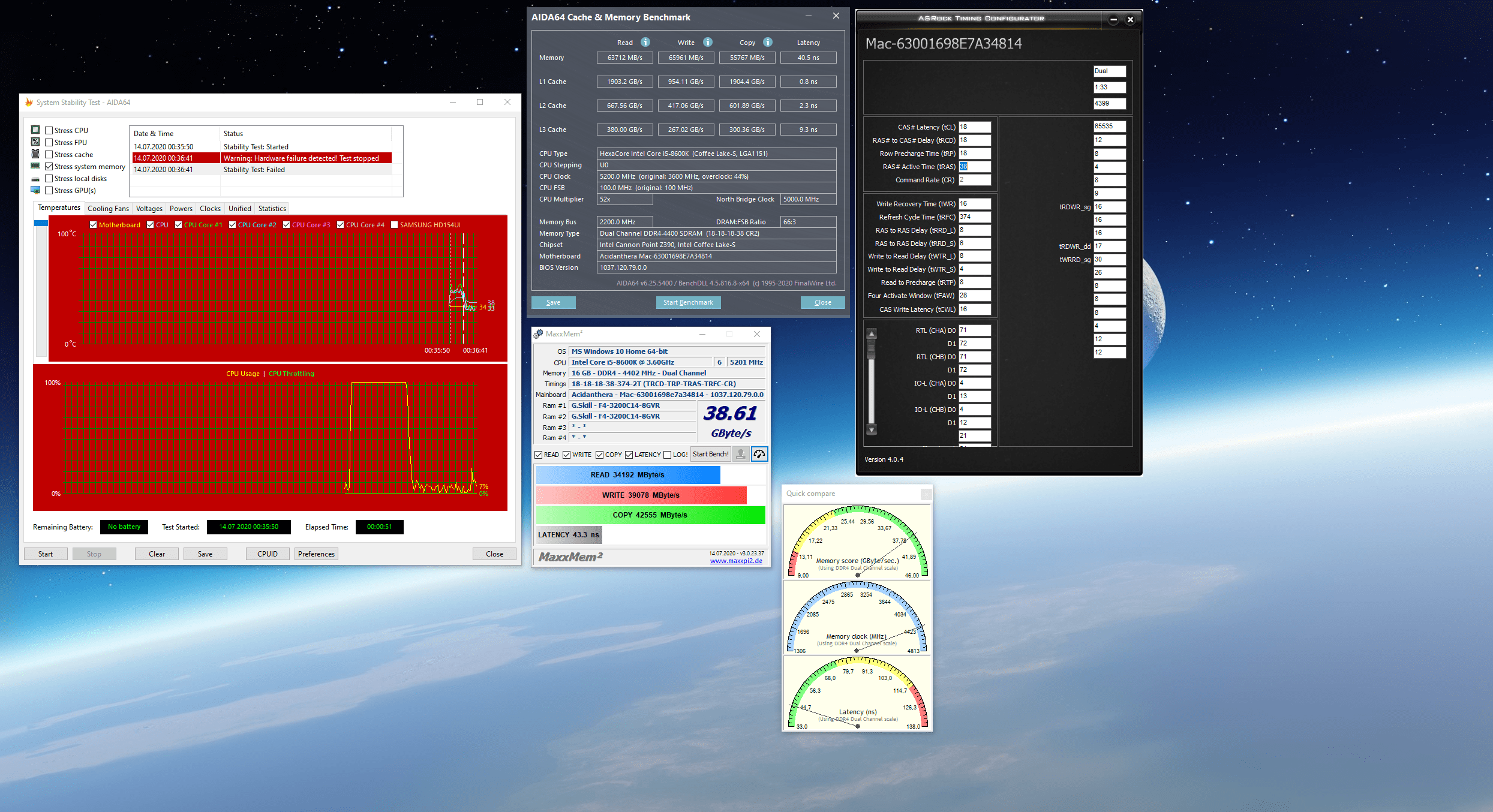 Das Kit aus 05/2020 steigt bereits bei 4600 17-17-17-32-320 ab 43°C aus - also sobald ich den Lüfter abmache dauert es 5 Minuten und es gibt einen Fehler.