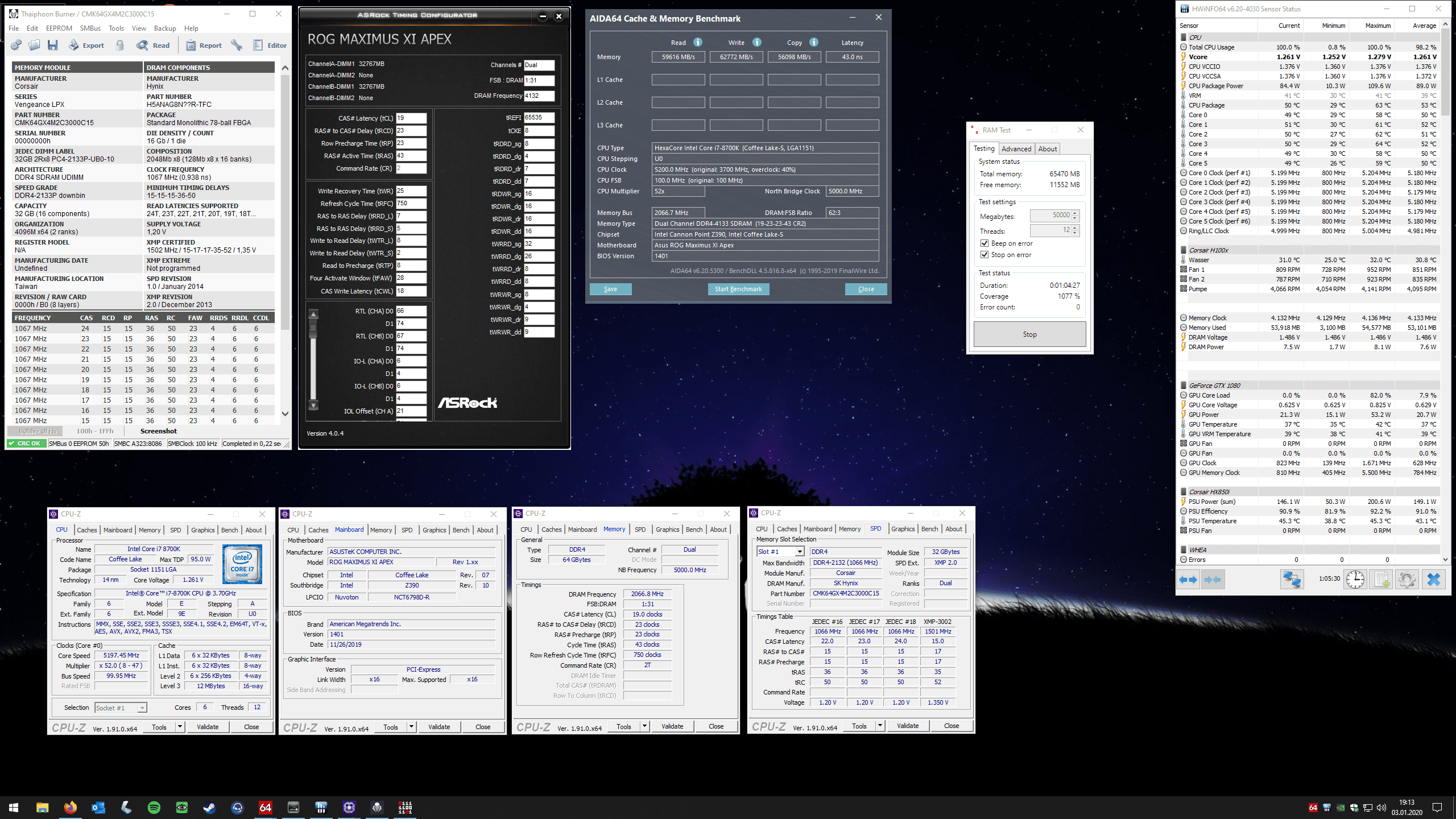 Oh man...also, merke, B-Die ist extrem temperatursensitiv, keine gute Kombi für RAM-OC ivm einem geschlossenen Gehäuse, einer AiO die nicht für genügend Luftstrom sorgen kann und einer Grafikkarte, die selbst im Idle fast mehr verbraucht als die CPU bei Volllast.