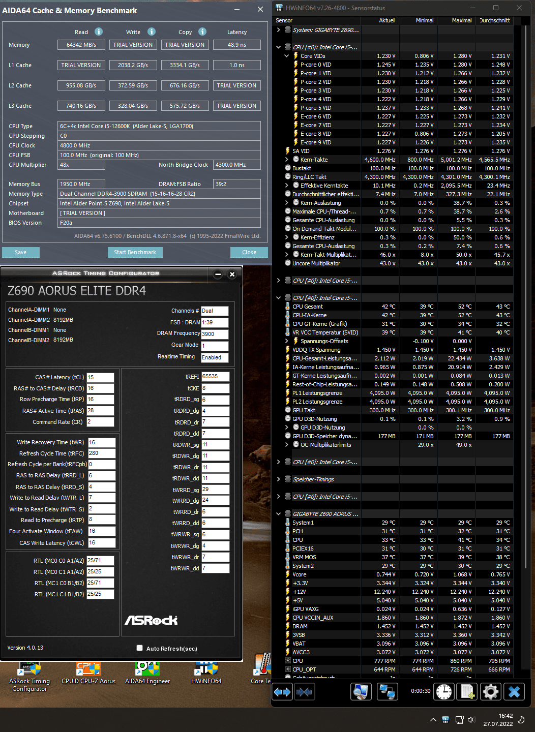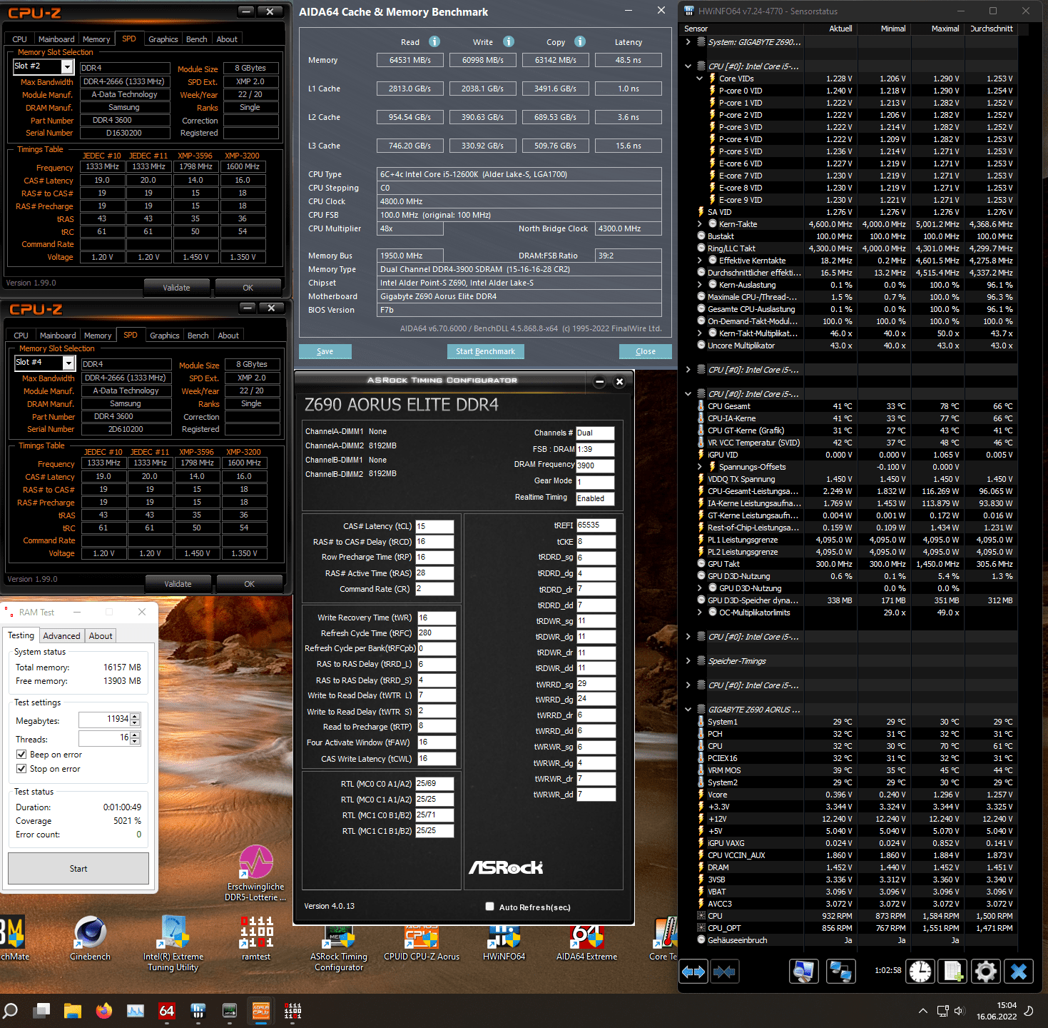 2x16GB 3466C16-18-18-36 early b-dies, auto XMP 1,24/1,27V IO/SA, jetz 1,33V IO/SA, weniger will auch nich mehr