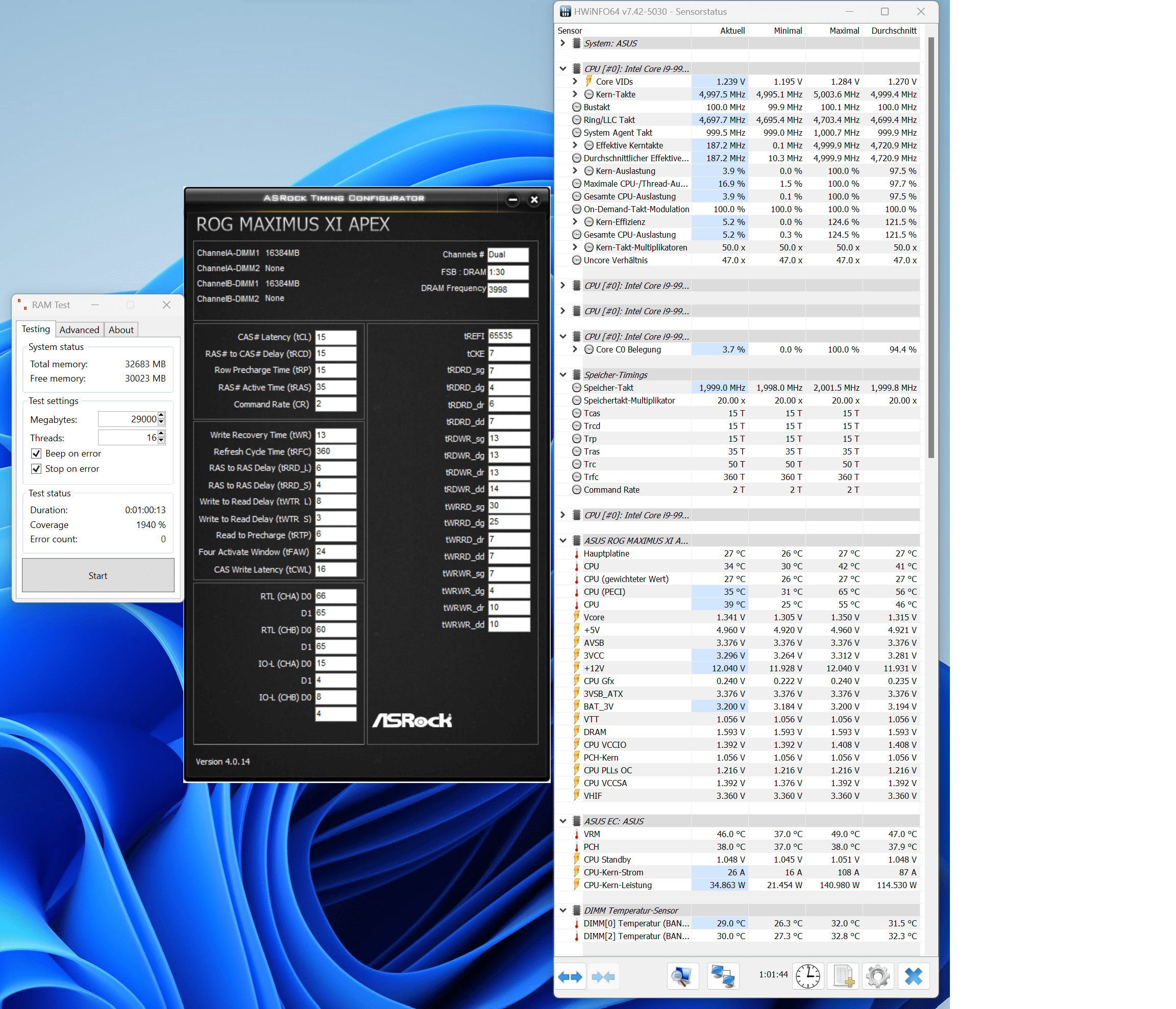 Danach noch Karhu (2000%) / TM5 Anta extreme 3x und Memtest86 4x im Uefi, um den gesamten Ram zu Testen.