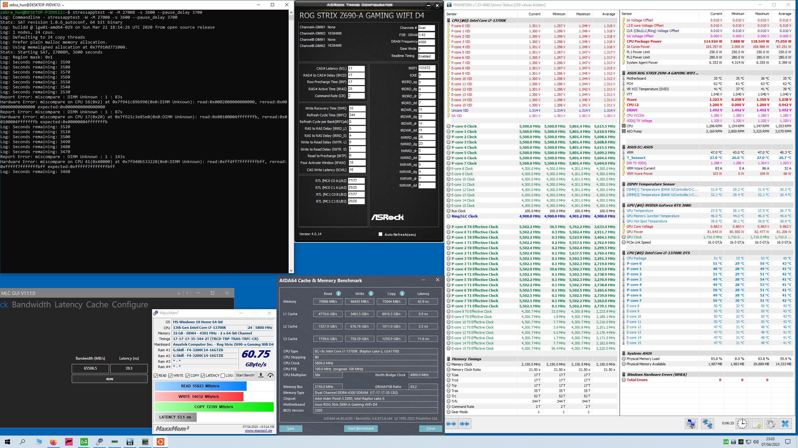 Ich komme trotzdem nicht damit klar wie unterschiedlich es sein kann. Mein 12900K "gutes Stück" lief ohne Probleme mit XMP 4000 CL16 ein bisschen mehr 4100 ging das ganze auch noch über 4200 war selbst mit CL17 nichts möglich. Und der KS will mit 4000 CL16 nicht Posten mit CL17 sind 4200 kein Problem. Da soll man schlau werden. Karhu 1000 sind ohne Probleme durchgelaufen Memtest5 auch später gibt es dann noch mal ein Test mit GSAT und dann mach ich mich an die Feinabstimmung.