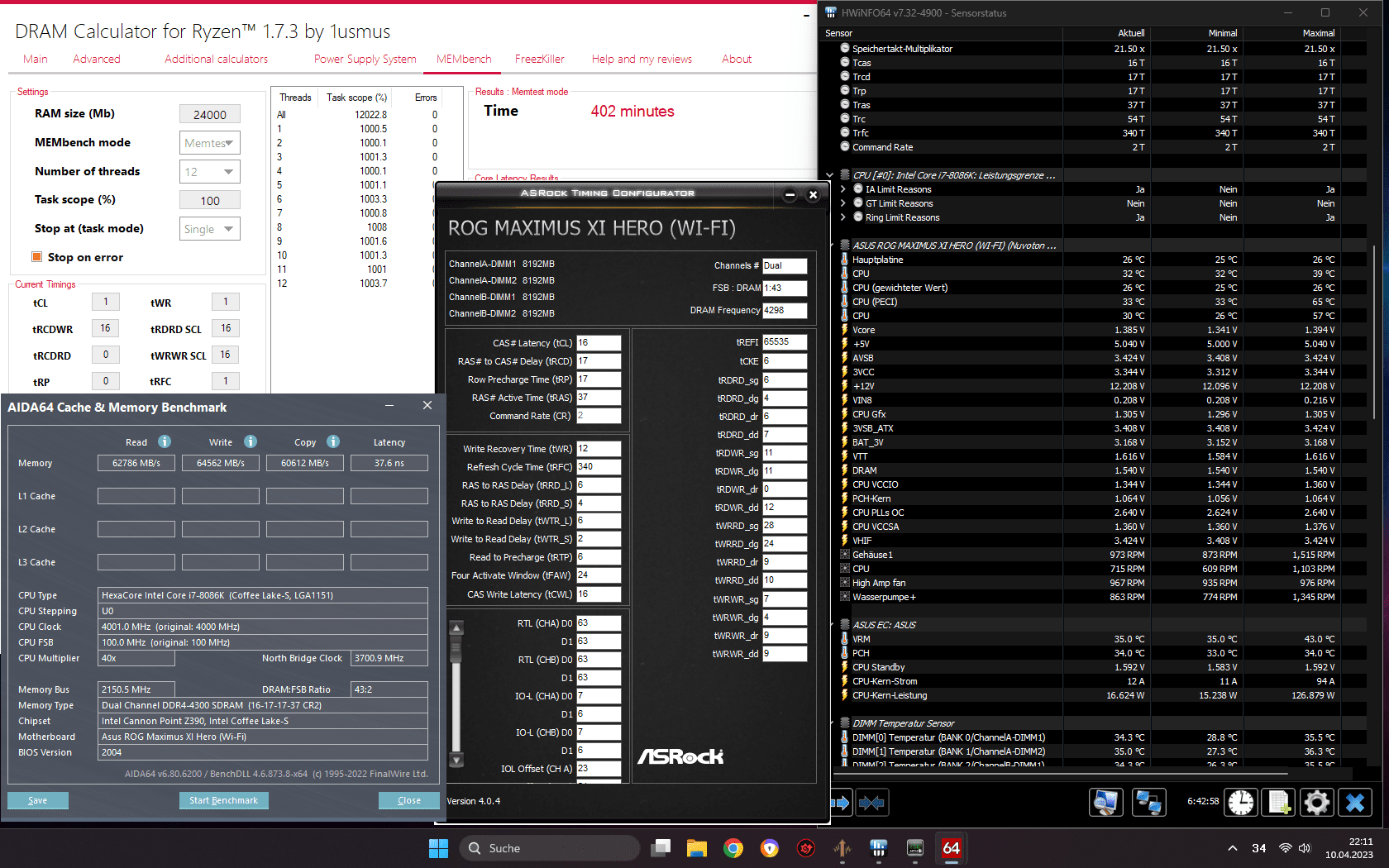 Aber ich habe geschafft 4266MHz immer, und 4300MHz oft, aber 4300 war nicht immer stable.