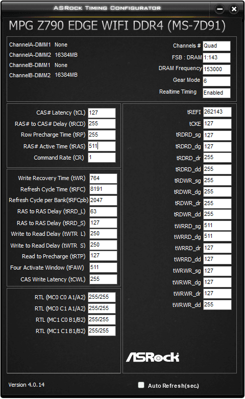 Anbei ein Screenshot was ich so auf die Schnelle mit 4 Modulen hinbekommen habe. VDIMM 1,45V und VCCSA 1,35V