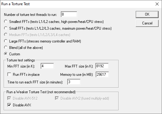 Du willst ja den IMC testen unter Volllast, Speicher kannst du später auch testen, also mit Ram ist das bei mir einfacher sprich ohne Häkchen, CPU bleibt ja auch kühler^^.;)