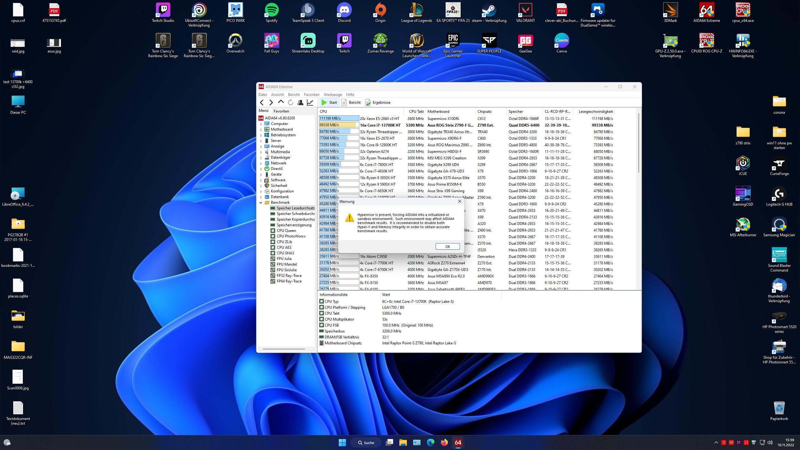 Meine Gskill Sticks 6400 CL32 laufen mit 6666 CL32 und Stock Timings (XMP) & Spannungen. Habs jetzt mal bis 3000 laufen lassen.