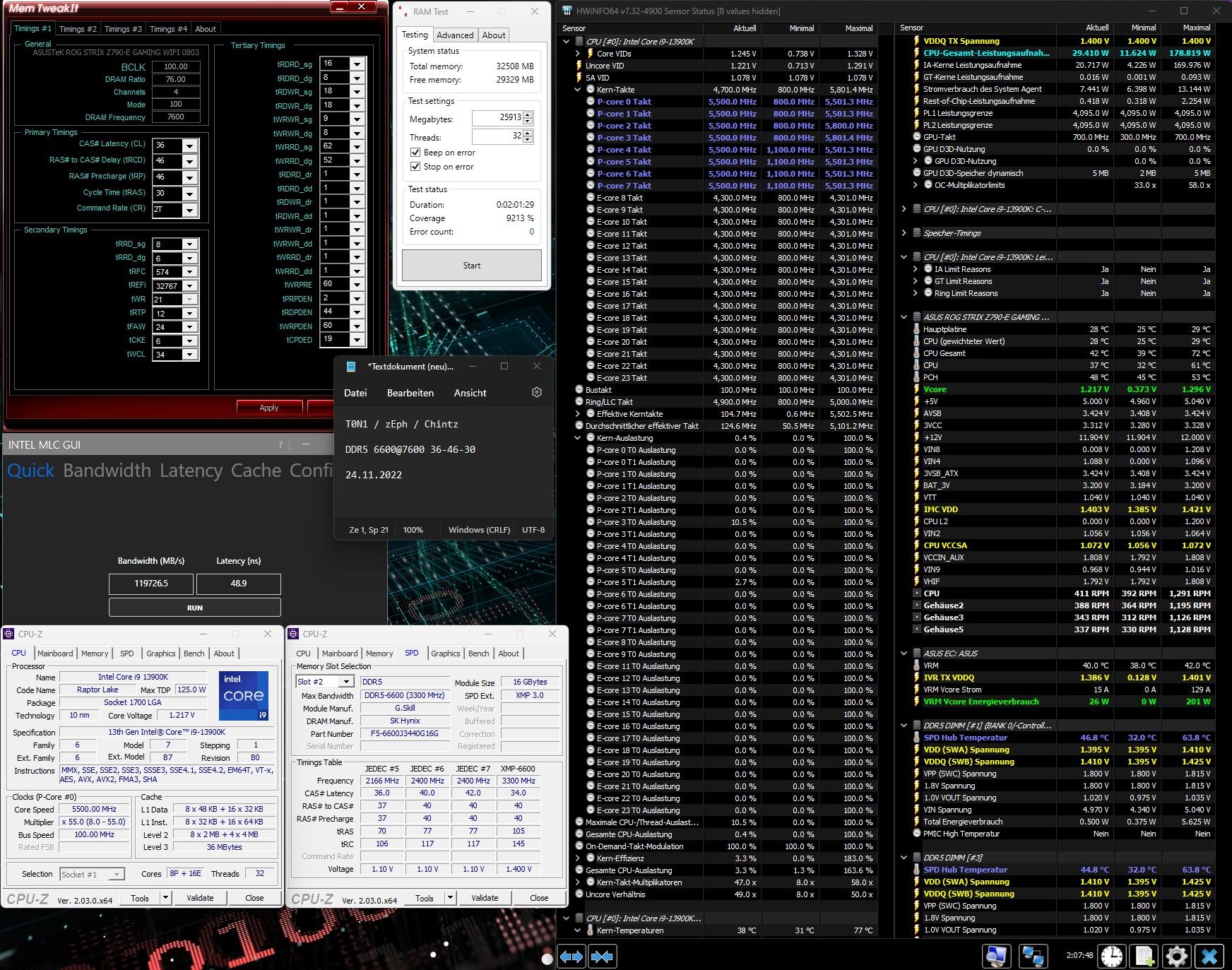 Vor nem reboot hatte ich das auch einige male stabil mit Karhu und TM5, hier einer der Beispielscreens: