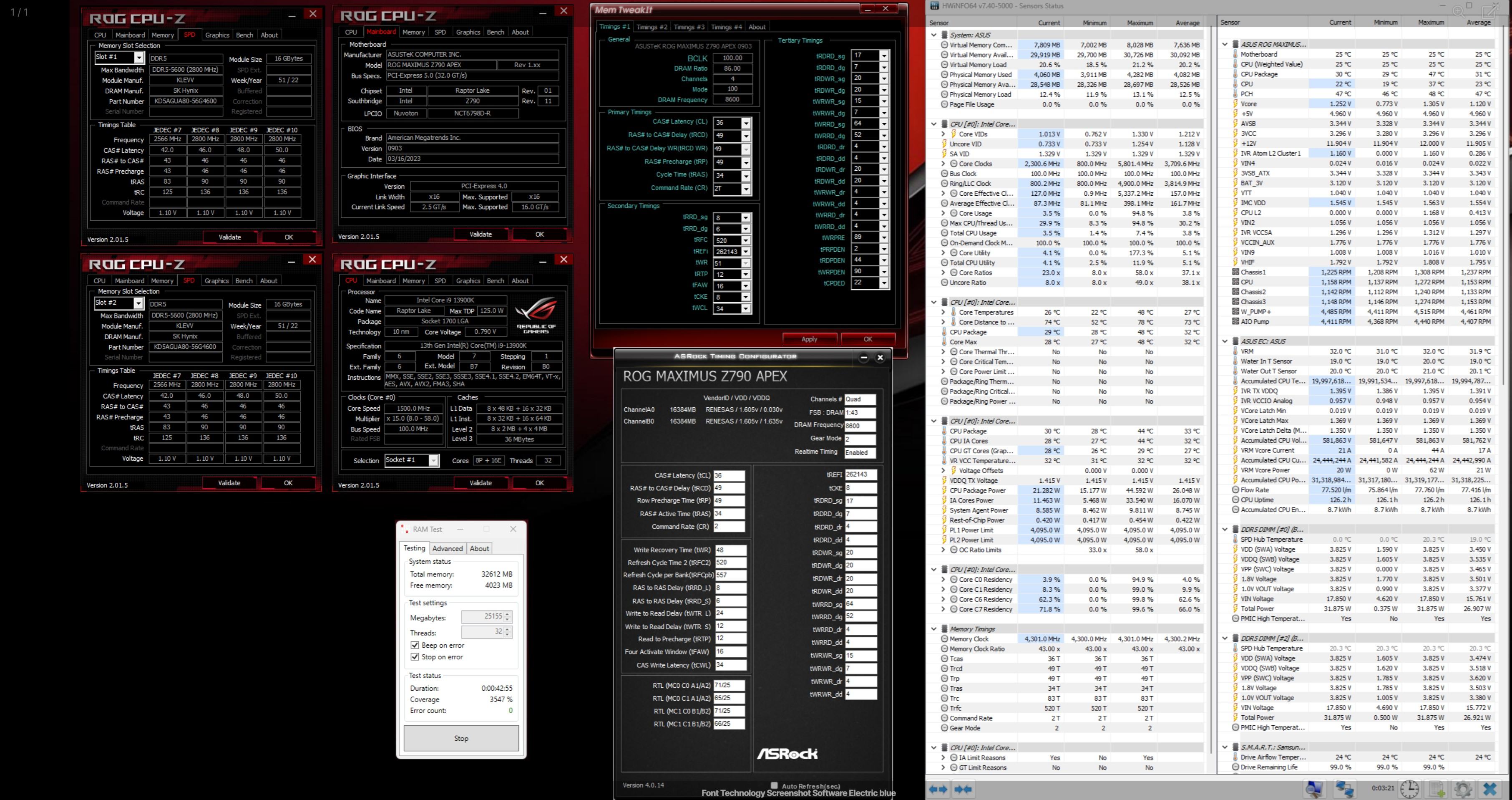 - SK Hynix DDR5-5600 (OEM green PCB A-Die / 84N locked) on air