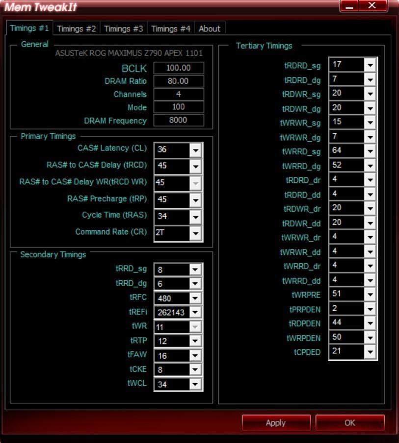 Nur sooooooo ärgerlich, dass die voltage locked sind. Aber mit Luftkühlung sind VDD/VDDQ 1.425v/1.395v @8000 einfach ideal... - und das mit den sehr guten Timings (siehe Anhang).