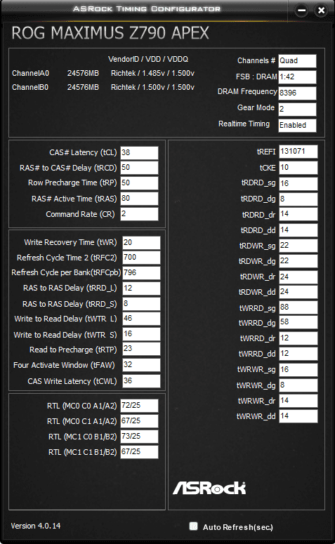 PS: Dabei fällt mir auf: Warum ASR TC bei twtrl/s da 28/10 zeigt ist mir ein Rätsel - im Bios stehen sie auf 24/6 .Vlt sollte ich die auf Auto stellen und dafür RDWR_sg/dg mal auf 20 o.22 manuell stellen....