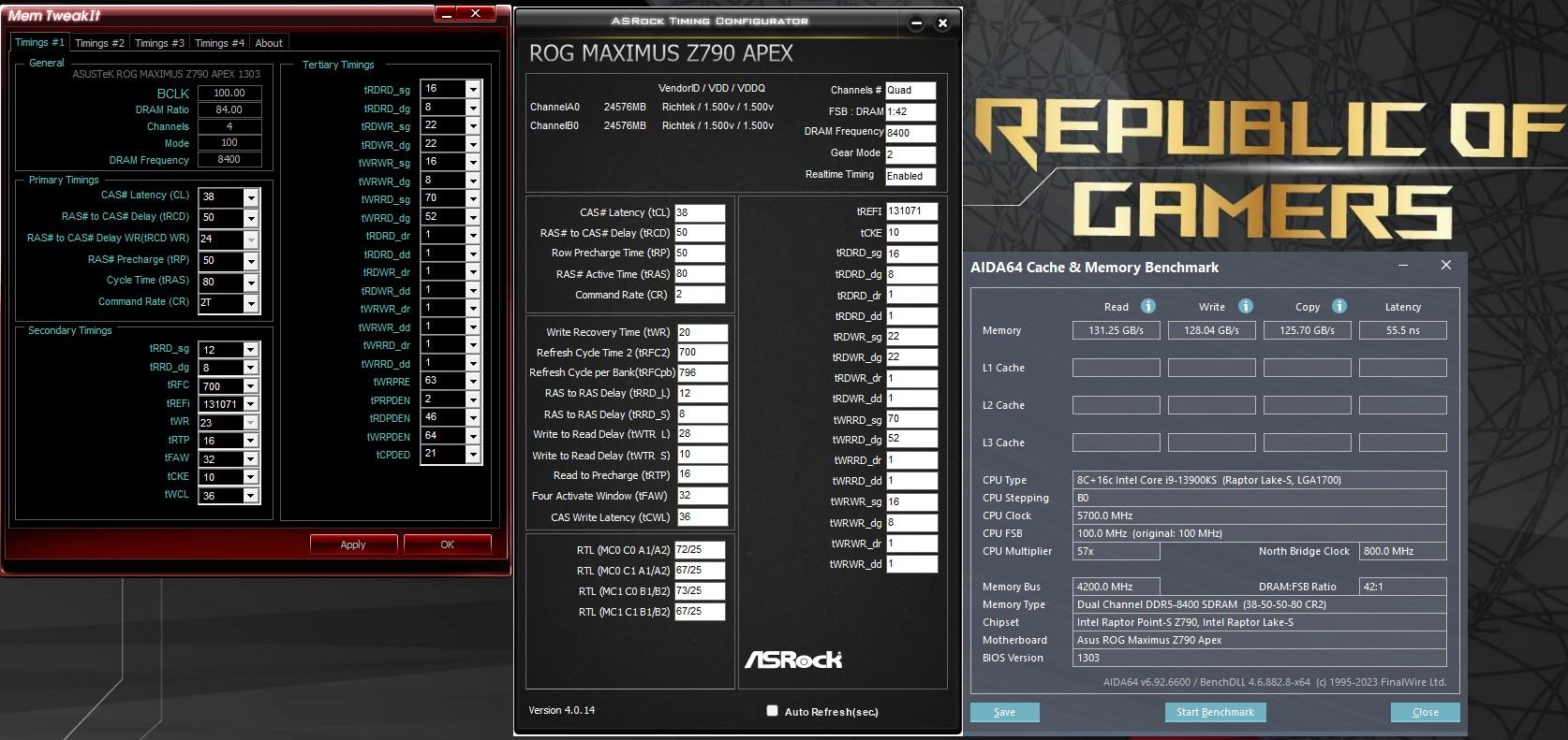 Die Werte scheinen mir ein wenig niedrig (oder ist der 13700k hier generell etwas lahmer als ein 13900k). Wo könnte ich denn quick & dirty ansetzen um das Ganze zu optimieren? (unbedenkliche Spannungen für Vdd und Vddq, IMC und SA, wichtige Latenzen usw)