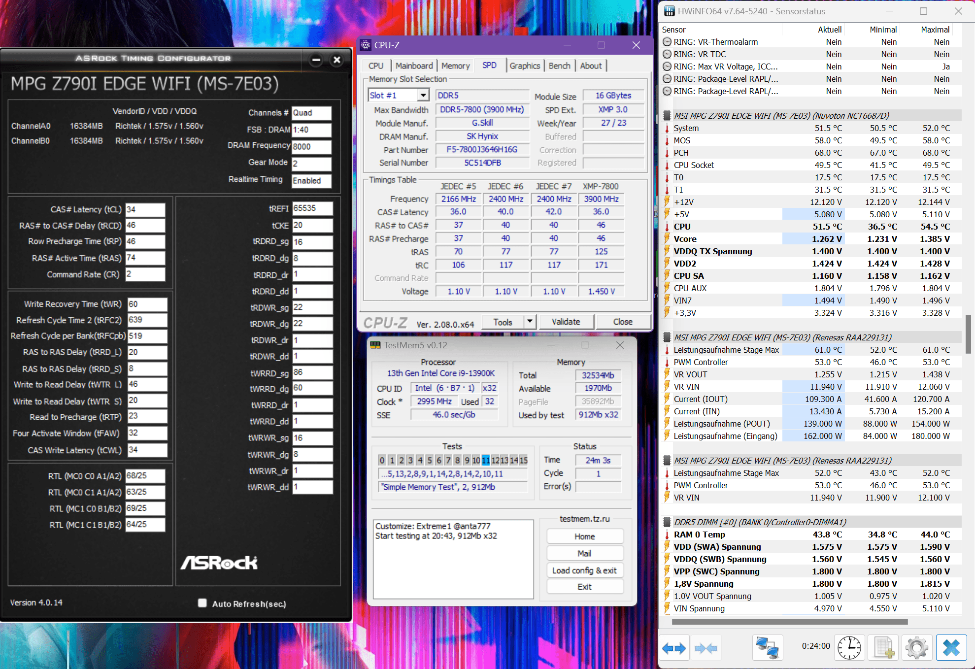 tWR und tRFC/tRFC2 solltest du noch deutlich drücken können - temperaturen sehen auch recht gut aus - schon mal tREFI 131071->262143 versucht ? (das senkt die latenzen extrem)
