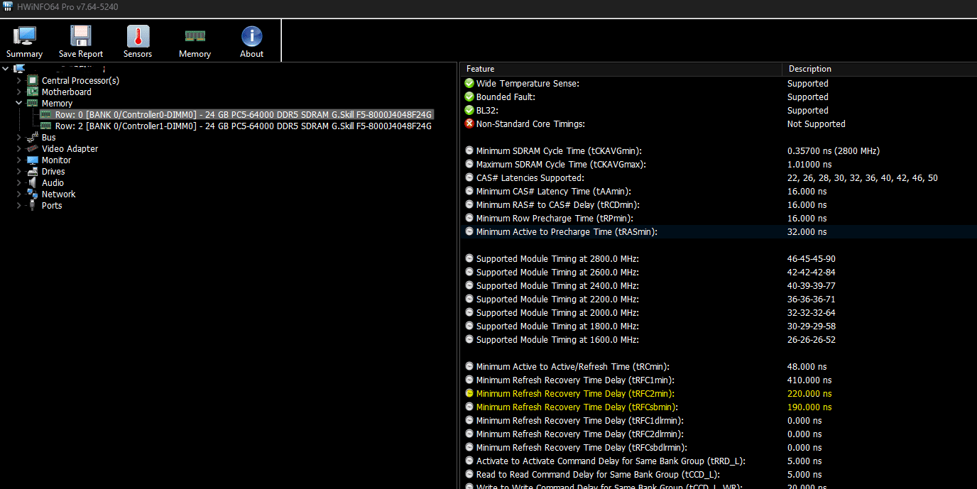 You can then use these values in HWinfo64 once you calculate how long a clock tick takes in ns for a given ram speed. E.g. @ 8000MT/s we have a speed of 4000Mhz (as DDR5 = DUAL Data Rate 5), so :
