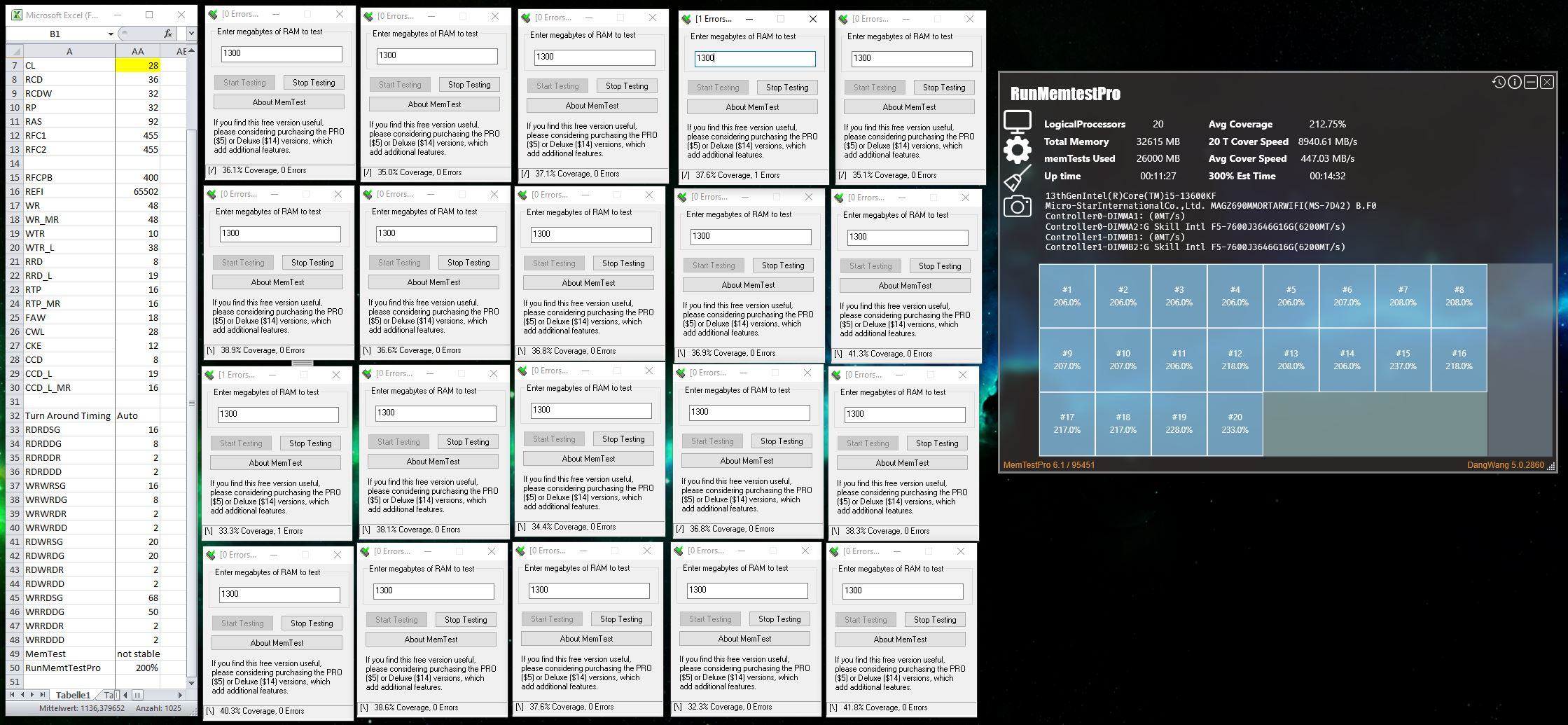 Habe dann jetzt RunMemtestPro ausprobiert, was mit dem links im Bild zu sehenden Setup stabil läuft, memtest zeigt aber Fehler an.