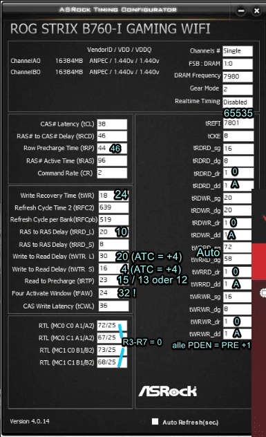 Ich habe noch ein paar Timings angepasst. Ist jetzt 8000 38-48-48-96 mit etwas schärferen Subs.