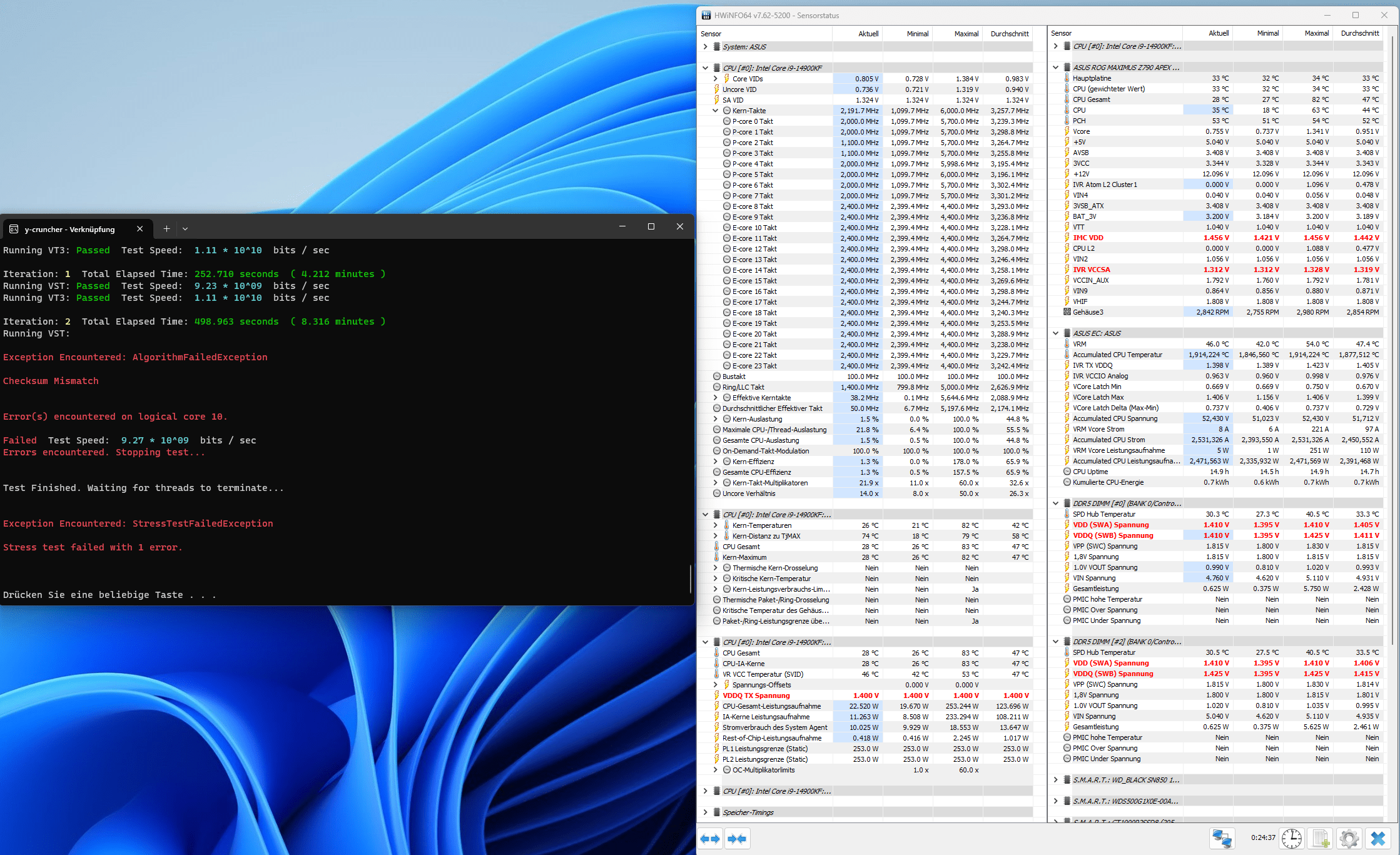 aktuell verzweifele ich dabei sogar "nur" die 8000 in y-cruncher stabil zu bekommen. Das Beste bisher waren 5 cycles mit TX 1.4 SA 1.3 VDD_CPU 1.47 (screenshot hat dann wieder früher abgebrochen)