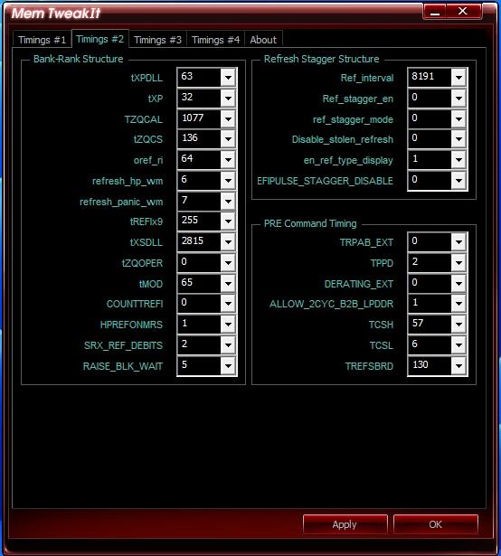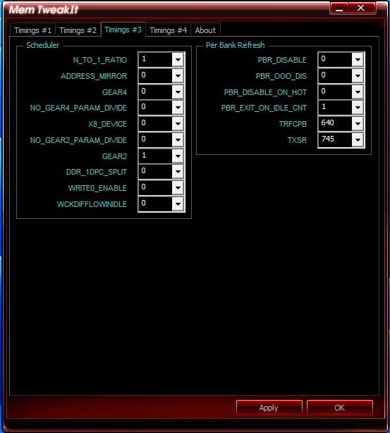 Things I do not understand: overclocking by >50% over specification and than sticking to JEDEC rules in terms of RFC/main timings I just use tRFC and tRFC as low as possible with a marginaround 20 clocks. The controller accepts nearly all values, easily testable by lowering it in realtime while running a stability test. You will find the point where first errors appear and 5 to 10 lower value will freeze/bsod.