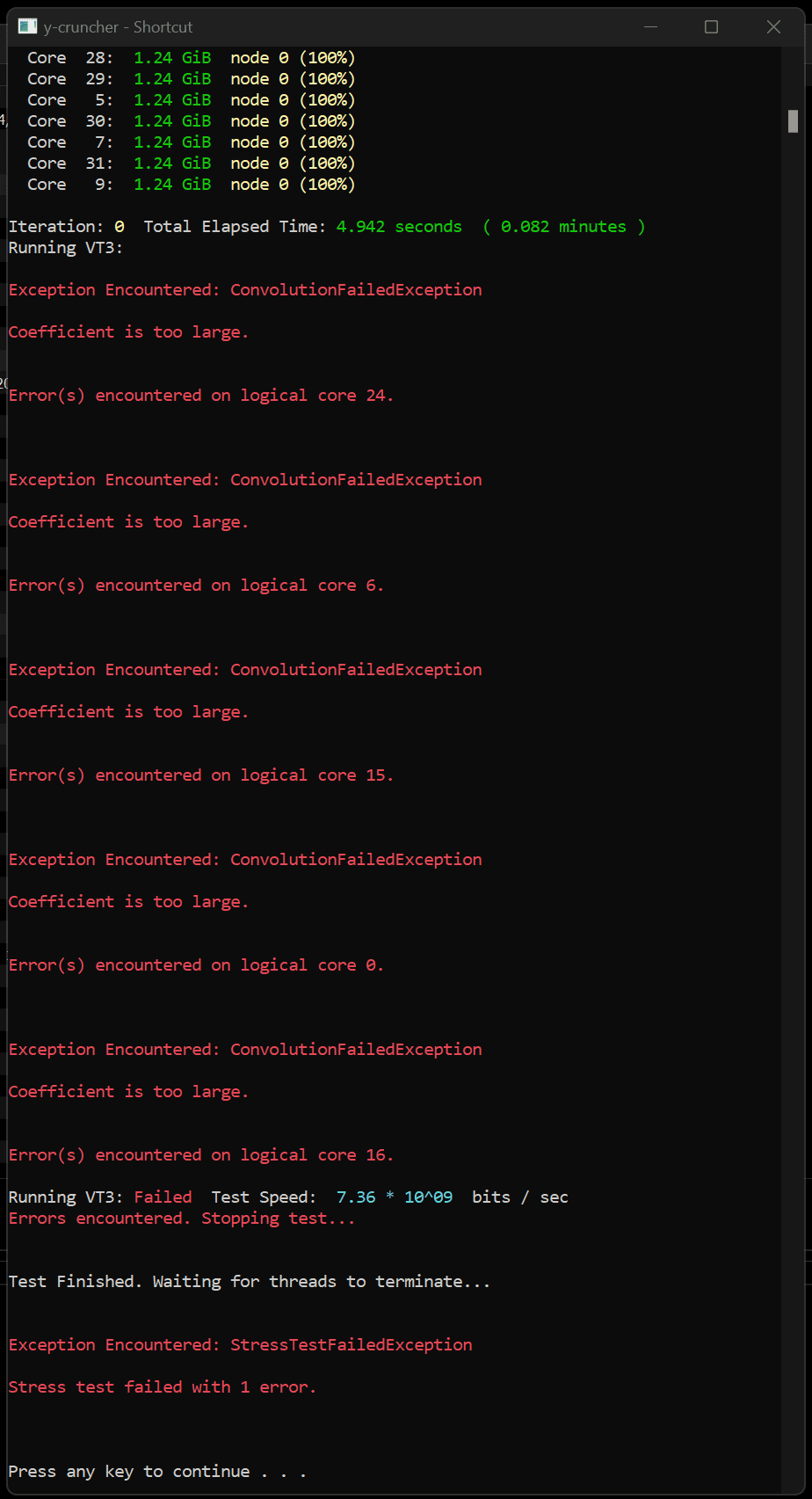 Everything else set. Y Cruncher error @ start. Checking TM5 now.