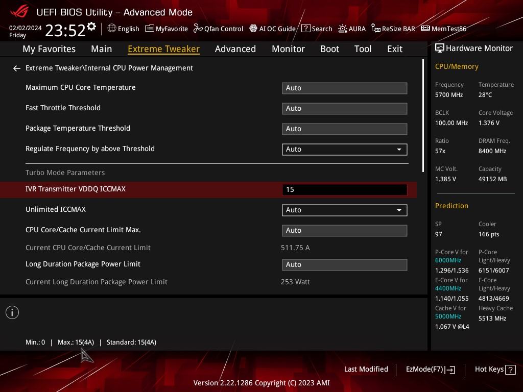 I did not set ICCMAX 400A, there are 3 shown in bios, all are in Auto,.. IVR Transmitter VDDQ ICCMAX, Unlimited ICCMAX, and IA SoC ICCMAX Reactive Protector,.. I would be guessing it's IVR Transmitter VDDQ ICEMAX?