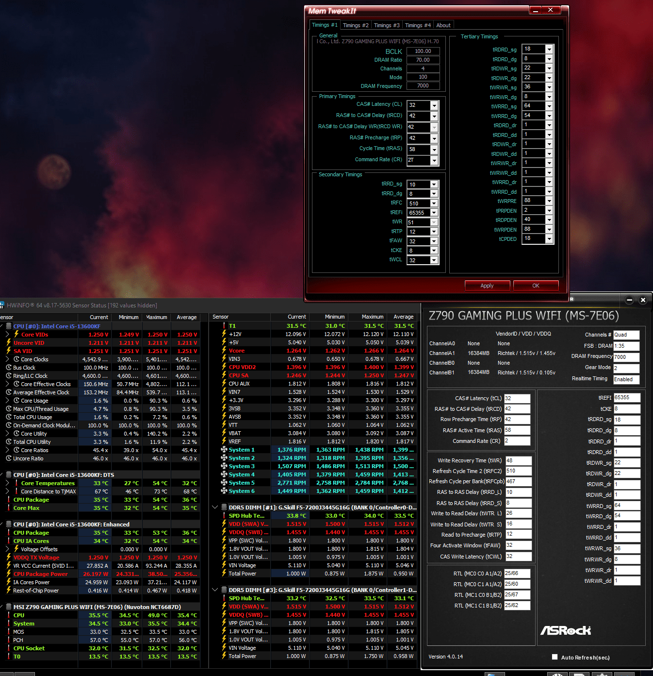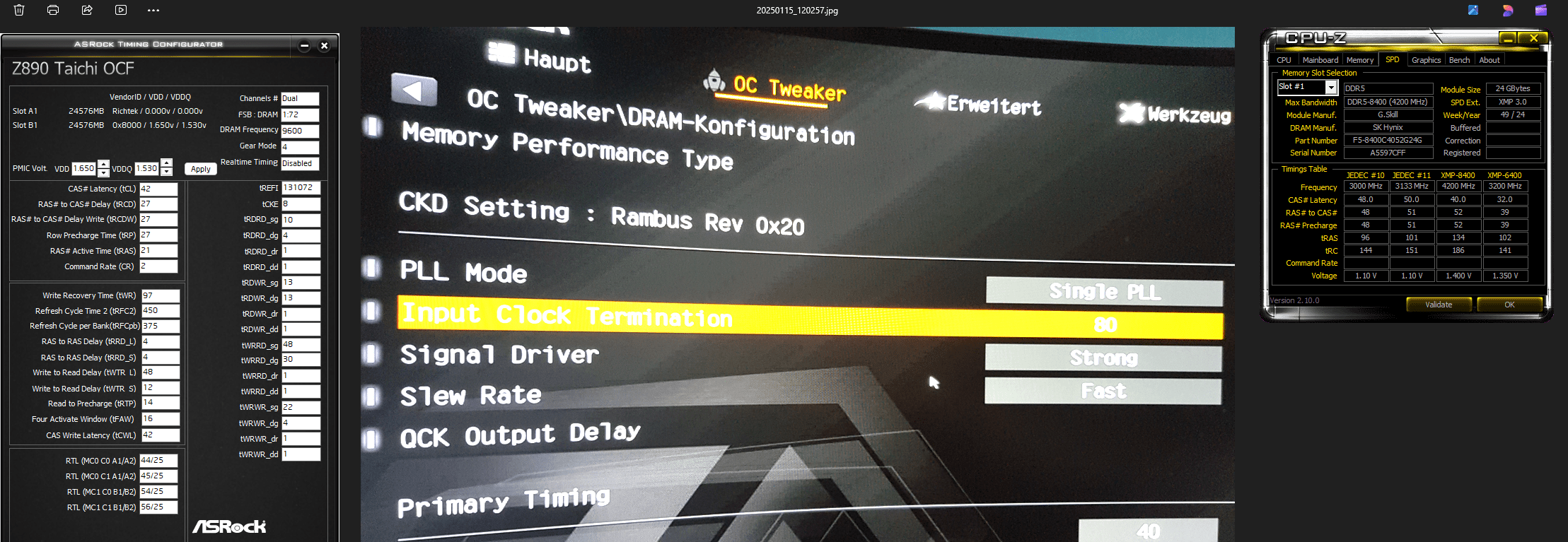 Habe das 9600 genommen, die CL auf C42 gelassen, VDD/Q auf 1,58, VCCSA 1,5 gesetzt und gebootet.