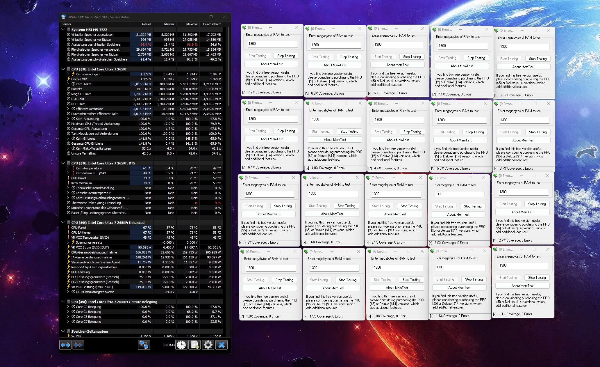 Beim Karhu Ramtest hab ich mit 23 Threads (einen lass ich für Windows) so 150-170 Watt und ca. 385 MB/s
