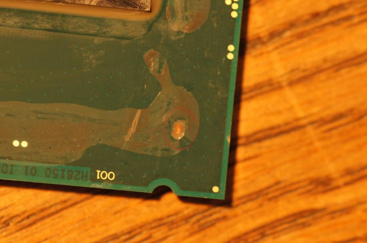 nachdem ich hier viel über das Köpfen einer Haswell-CPU gelesen habe ich auch mal an meinem 4790K ans Werk gemacht. Obwohl ich mir sehr viel Mühe gegeben habe, ich - so dachte ich - extra aufgepasst habe, war der Schnitt mit der Rasierklinge auf der Seite der Kondensatoren / ICs oder was da auch immer verlötet ist etwas zu tief. Vier von den Dingern waren ab...