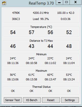Ich habe den 4770k (Thermalright TRUE) auf 4.5/4.5/4.4/4.4 Ghz und 1.228 V und er wird einfacch HÖLLISCH heiss (93C peak unter OCCT Small etc. Temps beim Spielen und alles andere sind aber "ok", BF4 usw. 65C maximal so das "im Prinzip" die Temperaturen eigentlich kein Problem sind.