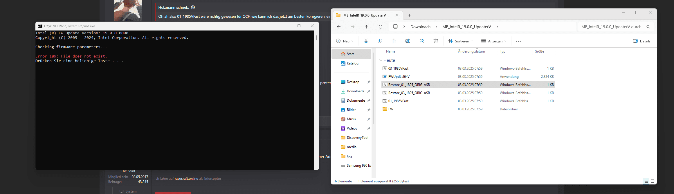 Ah, ein kompletter ME downgrade ist nicht erlaubt und wurde ebenso im guten Sinne versperrt.